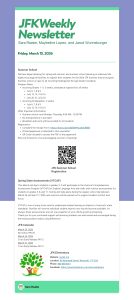 JFK Weekly Update: Each Friday, I write a Weekly Update for families. This weekly update is sent home as a paper copy with each student. It is also posted on my page on the WSD website.